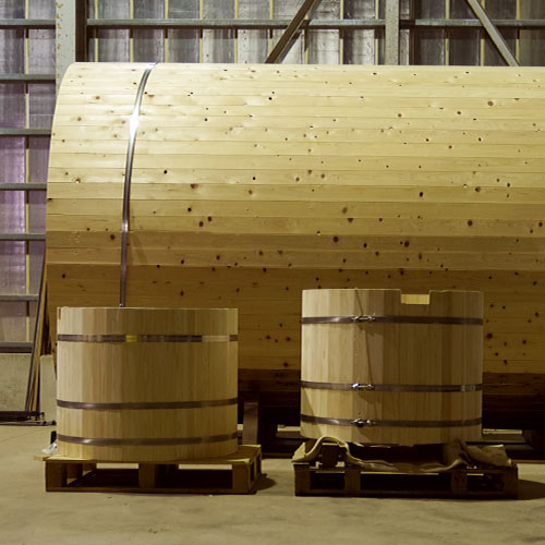 BURROWの製造・販売元の茨城木工株式会社(IBAMOKU)でもバレルサウナを常設、近隣のBURROW専用ファクトリーでは製造中の製品見学などもできます。(製造中の製品のため不可の場合もございます)