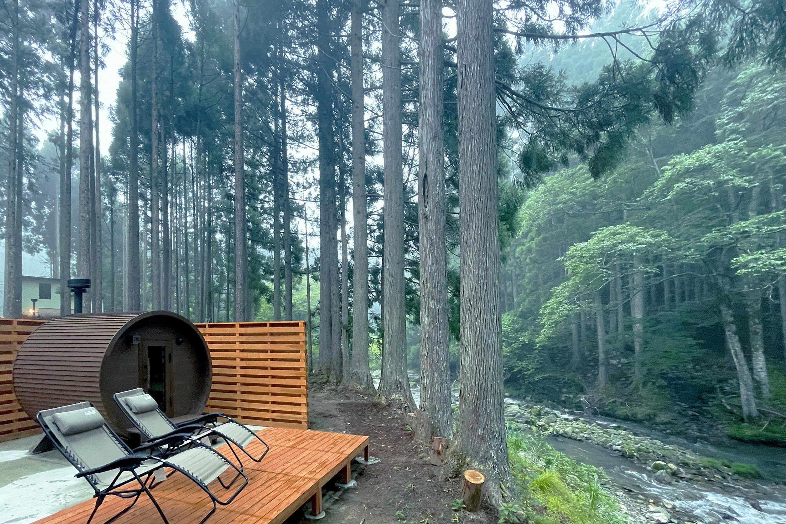 大阪市から90分の滋賀県高島市朽木に誕生した、豊かな自然に囲まれた秘密の場所。全3棟だけのプライベート空間「スモールホテル&プライベートグランピング Soil」(詳細住所は非公開)に、BURROWのバレルサウナが3台導入されました。⽇々の喧騒から離れ、森の緑に⼼を解き放し、サウナでゆっくりと「ととのう」。数十年間も放置されていた場所を枝拾いから始め完成した本施設は、大自然と一体感を楽しめるヴィラにバレルサウナや川辺にあるダイニングデッキ、ドッグランなどの設備も充実。非日常をゆっくりと過ごすことができます。